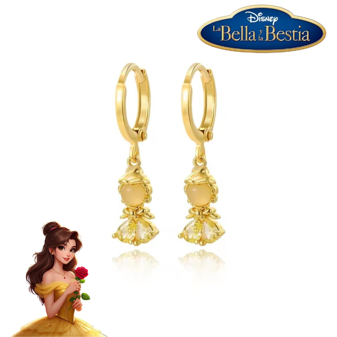 Aretes elegantes con un diseño inspirado en La Princesa Bella.