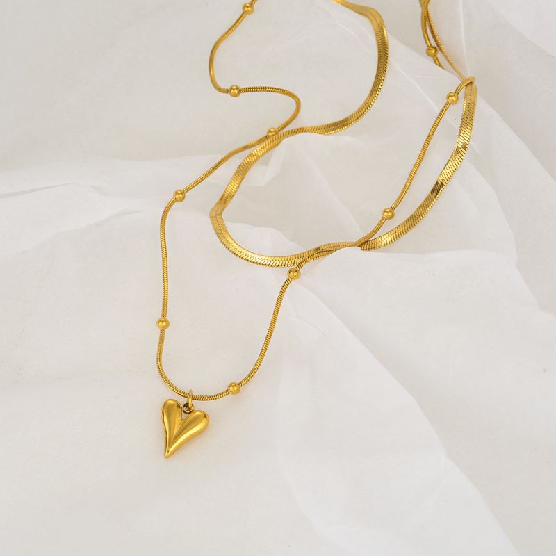 Increíble Collar Doble Capa Corazón dorado ❤️✨ Este collar es excelente para tu colección Elegante y versátil.