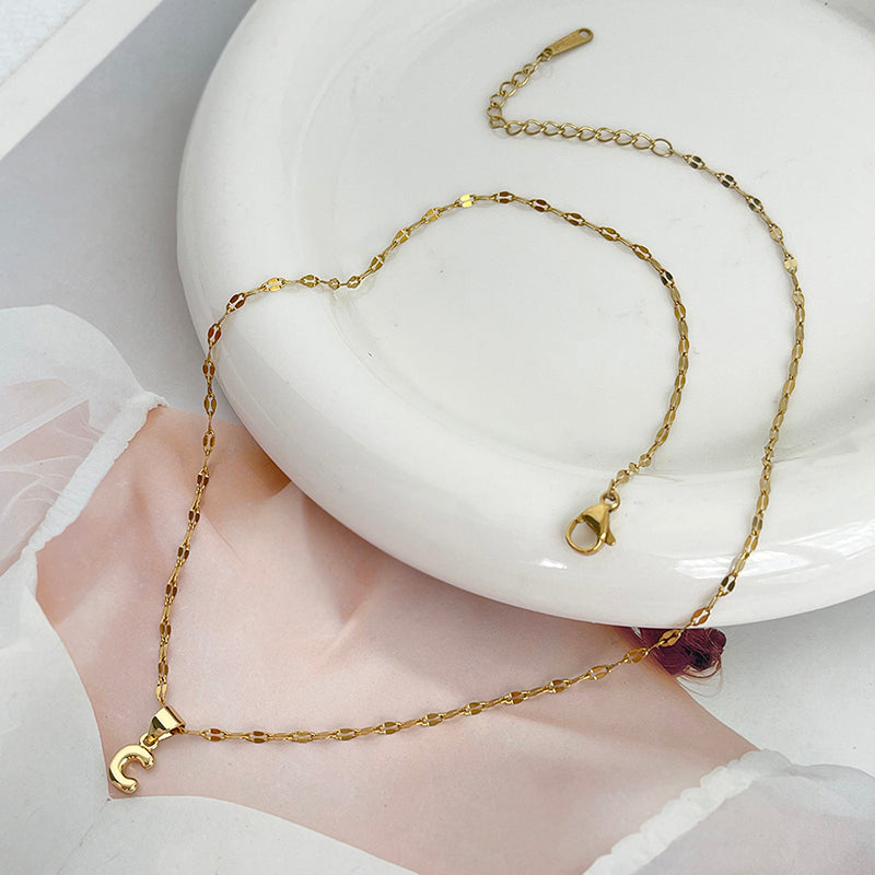 Con una cadena De eslabones Dorados y un delicado dije con inicial, este collar es perfecto para quienes aprecian el diseño minimalista.