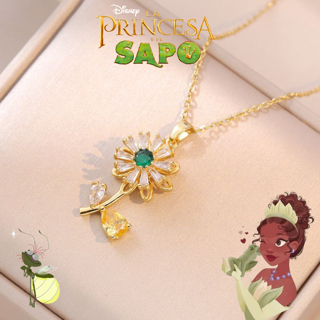 ¡Hermoso Collar Tiana!✨👑💚 Giratorio es una elegante pieza de joyería con un diseño inspirado en la Película de la princesa y el sapo.
