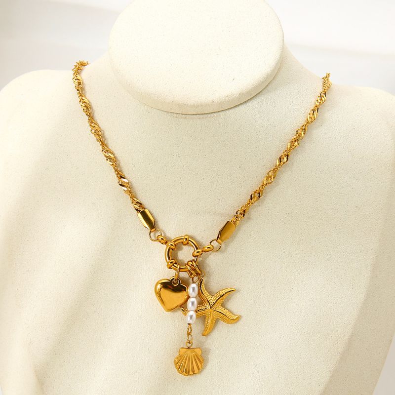 Collar Torsal Corazón Y Estrella De Mar elaborado en acero inoxidable.